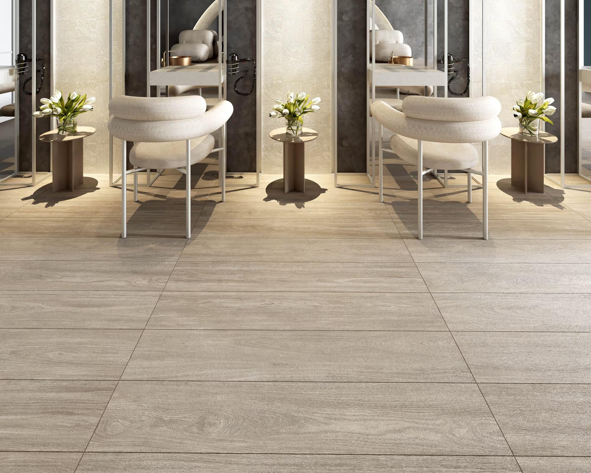 The Forneli porcelain collection mimics natural wood grain with a smooth, non-glossy matt carving finish. Ideal for natural, minimalist, or rustic spaces, it offers the beauty of wood without the hassle of maintenance, making it a practical choice for various interior styles.